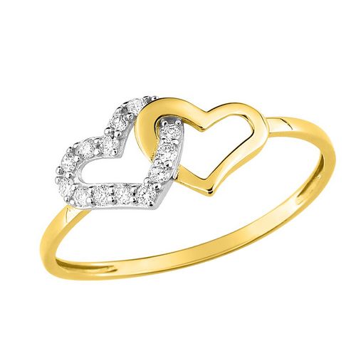 Bague Or 9k jaune 2 cœurs T58