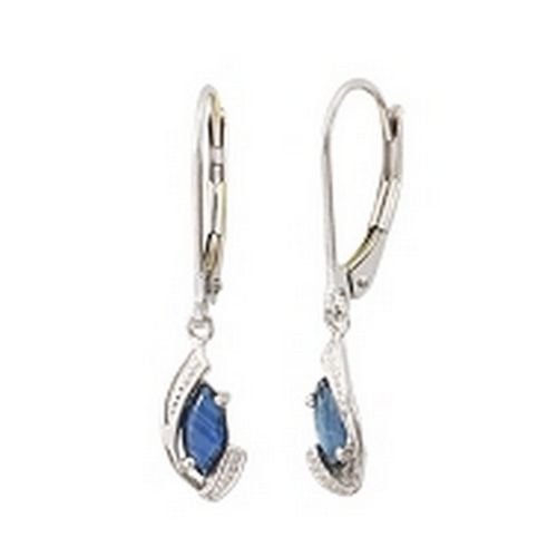 Belles paire de Boucles d’oreille Or 9K Gris dormeuses saphir empierrées