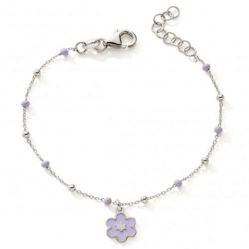 Bracelet argent violet fleur