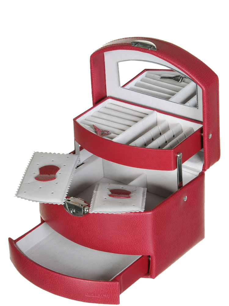 Coffre à bijoux Davidt’s façon cuir grainé avec miroir et ouverture automatique (fermeture possible à clef )