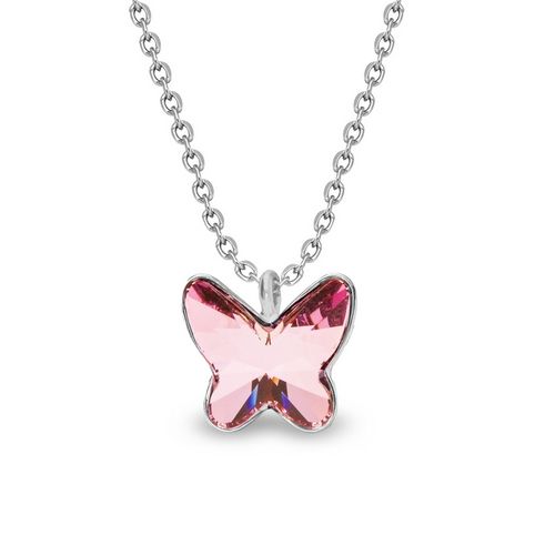 Collier argent Spark papillon rose