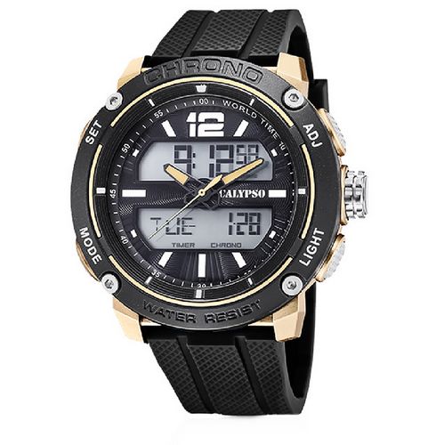 cette Montre Homme Calypso K5796/3, digitale et analogique en même temps, au couleur noir et doré.