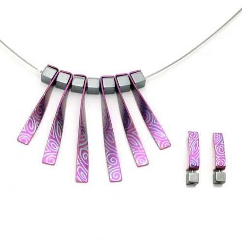 (Ce processus change la couleur du titane et lui donne une surface fortement colorée bleu, rose, vert, jaune)